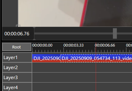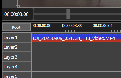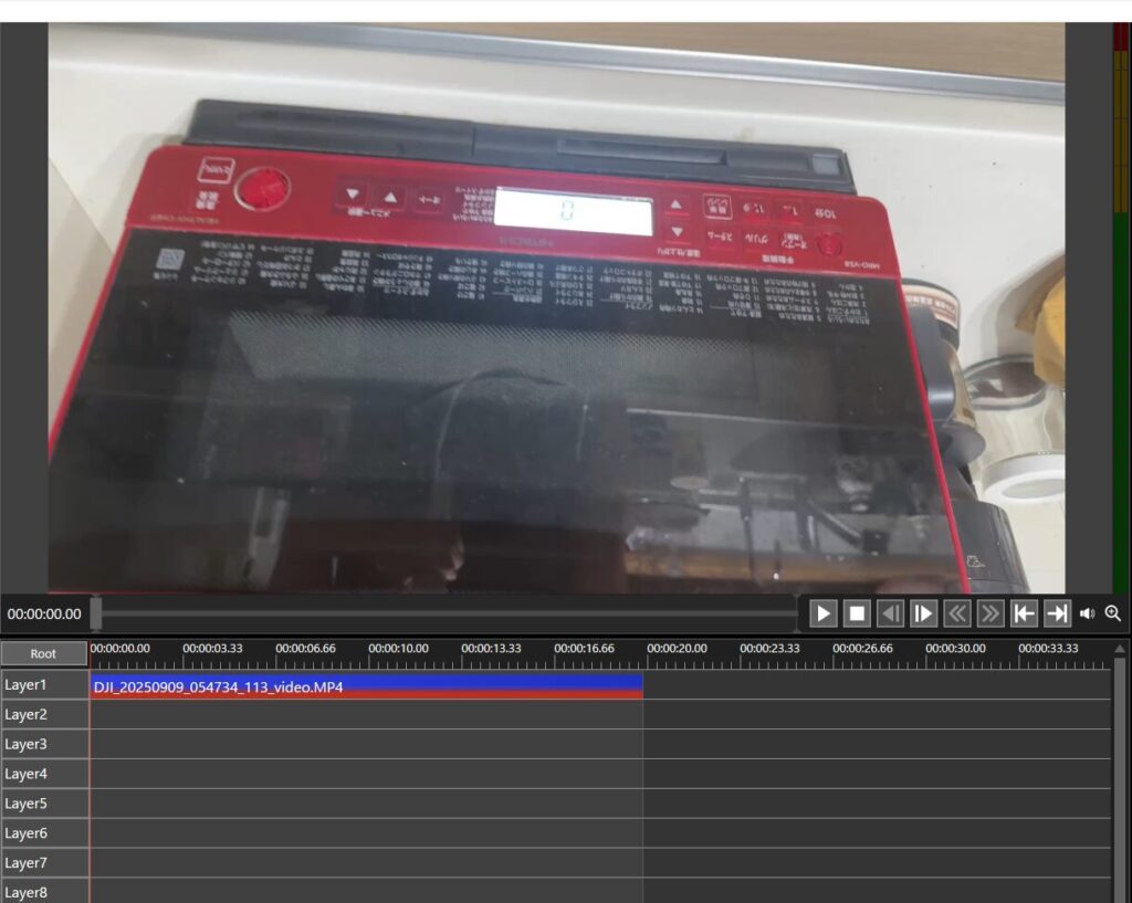 再生位置(赤い線)が動くとともに、真ん中のオブジェクトが選択されました。