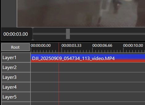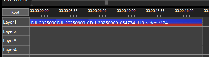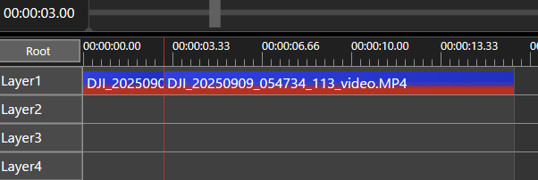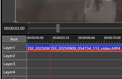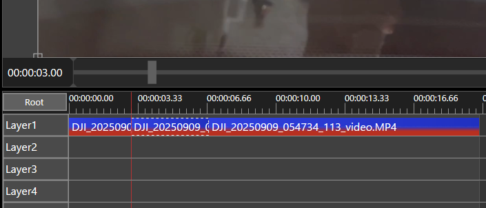 黄色い線が合ったところに赤い線:スタートラインが移動してきます。この赤い線がある位置で分割などの編集が可能になるので、ここでQを押すと分割することができるのですが、分割するには分割したいオブジェクトを選択する必要があるので、この動画ソースを一度クリックします。